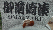 よね。今日は朝からず〜と渋滞で目的地に着く前に既に疲れ切っちゃったよ。 大して距離走ってないのに、クタクタになってようやく御前崎に到着。渋滞って神経使うんだよねぇ。バイクってオートマじゃないしさ。まあ、とりあえず、いつものように石碑の前で記念撮影しましょ、先生。あれ、先生!スズメ先生ったら!起きて下さいよ!あ〜あ、完全に拗ねちゃったよ。恋人が居ない寂しさに加えて、あの大渋滞だもんねぇ。そりゃ、やる気出せって方が無理かもね。 先生のご機嫌は最悪だけど、ま、お決まりなんで「究極の突端」を目指す事にします。御前崎サンホテル前の駐車場にバイクを停めて、目の前の道路を横断すると、そこが究極。すぐ海なんだよね、ここ。ちょうど満潮を迎えようという時間、浜に降りる事すら出来ません。干潮時には岩場に下りて、岩海苔取ったり出来るんだけどね。さ、一応ここが究極です。この先はもう進めません。スズメ先生、写真取るよ〜。先生、先生ったら。あれ?どこ行ったの先生?