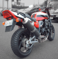 そこで、購入前に私設秘密特訓を行なう事に致しました。ちょうど市営プールに広〜い駐車場があって、しかも季節は冬。全く車の出入りがないこの絶好の場所で、秘密特訓を敢行する事に致しました。教官は私。ギャラリーはうちの子供たち。教習車は愛機ZRX1100号であります。 これね、ホントはいけないんですよ。立派な無免許運転なんです。まあその辺は目をつぶって貰うとして・・・。 実のところ、私、かみさんの実力を過大評価していたので御座います。いくらペーパーだと言っても一応動かすだけだったらなんでもないだろう位に考えていたのですね。ほら、私も現在の愛機ZRX1100号が来るまでは約12年間のブランクがあった訳ですが、「跨った瞬間に思い出す」ってのがあるじゃないですか。かみさんにしても、実際に運転してみりゃ不安も取れるだろ、と軽く考えていたのであります。 知らない方は「250ccに乗る為に1100ccで練習するなんて」とお考えになるかも知れませんね。でもね、運転感覚は実際にはほとんど変わりがないんですよ。少なくとも教習レベルにおいては。そりゃ1100ccの方がはるかに馬力もトルクもありますし、ちょっとアクセル開ければすぐ200Km/hになっちゃいます。車重もありますから曲がる時の遠心力も強くなりますしね。しかし、いざ教習となると、トルクがある分エンストしにくいし、重い車体重量も、ゆっくり走る分には安定感に繋がるんです。 最初は一速で発進し、直進のまま二速にシフトアップ。まっすぐそのまま直進走行してゆっくり停止する練習です。基本中の基本ですな。初心者の多くはUターン時にバイクを支えきれず転んでしまうパターンが多いのですが、直進だけならば比較的安心です。 私は初心者のかみさんが運転しやすいようにバイクの向きを進行方向にあわせ、、エンジンをかけた後、ギアをニュートラルに入れた状態で、サイドスタンドを立てました。広い駐車場ですから、向こう側のフェンスまでは300m以上あります。 さあ、いよいよ教習開始。子供たちの見守る中、母ちゃんはサッと我が愛機ZRX1100号に跨り、素早くサイドスタンドを蹴り上げました。はじめて見る、しかもいつもとはちょっと違う、颯爽としている母ちゃんの姿に、一同おぉっと声をあげたので御座います。 ところが、手に汗握る家族をよそに、当のかみさんはなかなか発進しません。しかも何か忘れ物を捜しているような、そんな感じのオドオドした様子。どうしたの、と聞くと、彼女は蚊の泣くような声で、ボソリと言いました。 「ギヤってどう入れるんだっけ?」 これはコカす。私は瞬間的に確信致しました。愛機ZRX1100号は新車で購入した後、立ちゴケすらした事がありません。ピカピカの新品なのであります。私はあまりの衝撃のため薄れ行く意識の中で、かみさんに練習させちゃおうなんて馬鹿げたアイデアを実行に移してしまった事を、モーレツに悔いていたのでありました。 「あ、そうだ。思い出した」。かみさんはそう言うやいなや、クラッチを握り、ガシャンとギアを一速に入れました。しかもそのまま発進しようとしています。うわー待ってくれ。だめだ発進しちゃ。コカす。絶対にコカす。そう叫ぼうとした私の口は突如硬直し、実際にはパクパクしているだけでありました。かみさんの運転する我が愛機ZRX1100号は、スルっと微速で前進を始めました。クラッチを繋いだのであります。私は自分の背中を冷汗がツーっとつたうのを感じながら、今度こそ、本当に失神したのでありました。