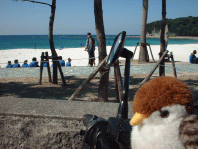 - 途中、ちょっと寄り道。国道42号を離れて、南紀白浜へ。ここで、3日ぶりの入浴。牟婁の湯(むろのゆ)。硫黄泉で、気持ちE〜。