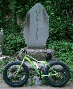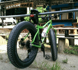 八王子市役所を過ぎたところで浅川サイクリングロードを離れ、都道521号、通称、陣馬街道に入ります。気温は既に30度を越えていて、熱中症警報が出されている模様。暑い々々。比較的渋滞気味の照り返しの強い陣馬街道を、トコトコと進みます。ロードバイクではパンクを恐れてあまり路肩に寄らないようにしていますが、デブ号ではそんな気遣いは無用。側溝の蓋だろうがグレーチングだろうが、どんどん乗り越えていきます。いやぁ、ファットバイクって実に街乗り向きでありますなぁ。 川原宿交差点を過ぎると交通量はガクンと減ります。聖パウロ高校入り口を過ぎて北浅川に沿って走ると、川面から涼しい風が上がってきます。恩方マス釣り場を左手に見つつ進み、程なく夕焼け子焼けふれあいの里に到着しました。バイクラックにデブ号を停め、アイス休憩であります。予想通りここで質問責めにあいましたよ。曰く「こんな自転車に乗ってどこへ行こうというのですか?」、「鍛錬の為の自転車なんでしょ?」、「これ、自分で改造したの?」、「この太いタイヤは舟のように水の上を走る為のものですか?」・・・。わはは、中々の注目度であります。 アイスを食べ終えて出発です。そう、今日はこのまま和田峠を目指すのであります。思えばロードバイクのピンク号を新造した時も、小径折り畳み自転車のチビ号を購入した時も、一番初めに出掛けたのは和田峠でありました。和田峠は東京都と神奈川県の県境に存在する峠で、その驚異的な斜度から、地元のローディーからは「鬼の和田」と呼ばれている、ま、一種の聖地でありますな。 為せば成る 為さねば成らぬ何事も 成らぬは人の 為さぬなりけり。 ファットバイクは車重もそこそこ有り、車格も巨大で、見るからに鈍重そうですが、ギアがかなりのワイド・レシオに設定され、特にロー側は非常に軽いギアが用意されている事もあり、和田峠のような急坂でも意外な程、頑張れるのでありますよ。それでも鬼の和田、そう 急な2ヶ所の左ヘアピンも何とかクリアし、やっとの思いで峠の茶屋に到着しました。結局インナー・ローまでは使わずに済みましたが、ダクダクの汗であります。初めてファットバイクの実車を見たのが、この和田峠。私もデブ号でこの和田峠にやって来る事が出来たとは、何とも 本来であれば雪上を楽しく走る為のオフロード自転車で、よりによって鬼の和田峠にアタックするとは、そもそもその用途からして間違えているのでは、といった御指摘がある事も承知しております。でもね、東京都の西側に住む者として、新車を購入したら和田