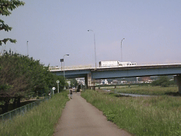 浅川サイクリングロードは、国道16号バイパス新浅川橋の下をくぐって直進しています。