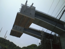 突然頭上にそびえ立つ、圏央道の橋梁工事現場です。