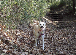 本当の名前はこむぎなのにも関わらず、うちでは彼女の事をこむぎと呼ぶ者はおりません。「こむぎ」って意外と発音しづらいのです。殊に「むぎ」の部分は力が入りにくく、そこで私も含め、皆、彼女の事を「こむ」と呼びます。ちょっと発音してみて下さい。「こむ!」ね?力がしっかり入って発音しやすいでしょ? こむぎは室内でおしっこやうんちをする事はありません。彼女はトイレを兼ねて必ず朝晩散歩に行きます。雨の日は、こむ 朝晩のルーチンの散歩の他に、そうですねぇ、週一回程度の頻度で、拡大こむさんぽに出掛けます。これはトイレの為ではない、純粋なリクリエーションとしての散歩であります。普通の散歩は30分から長くても1時間程度なのに対し、拡大こむさんぽは2時間以上の長距離散歩であります。勿論こむぎは、この拡大こむ散歩が大々々好きです。 拡大こむ散歩のキーワードは何と云っても「山」であります。我々の住む日野市程久保地区には、多摩動物公園という都営の大きな動物園があり、この動物園の周囲には雑木林が残されています。おそらくは動物園の臭いや吠え声が近隣住民のクレームに繋がらぬように、宅地との緩衝地帯として残されているのだと思いますが、多摩丘陵の自然がそのまま残されたこの雑木林には、"語らいの 日野市はれっきとした東京都内の街です。ところがこの語らいの路を歩いて参りますと、ここが東京とは到底信じらぬ位の山深さ。散歩中にモグラやウズラを見る事もしばしばです。家から数百メートルの所にこうした自然が残されているというのは、何て幸せで素敵な事でありましょう。そういえばこの辺りは、スタジオジブリ制作のアニメーション映画、平成狸合戦ぽんぽこの舞台となった場所でありまして、宅地としての開発も進んだ一方、未だ随所にこうした多摩丘陵の自然が残されているのであります。 平日の午前中、気が向くと仕事の前にたっぷりと2時間半程、拡大こむ散歩に出掛けます。私がこむぎに「おい、こむ、出掛けるか」と声を掛けますと、奴も出掛けるのが分かるのでありましょう、くむくむくむくむと嬉しそうに呼応致します。いつもの散歩紐ではなく、リール式の5mは延びるリードを出そうものなら彼女の期待は最高潮に達し、うっすらと眼に涙さえ浮かべつつ、くむくむくむくむくむくむくむくむと玄関でお座りして私を待ちます。 この季節、語らいの路は凛とした空気で満たされ、歩き始めこそ寒いものの、しばらくするとうっすらと汗をかく程です。単なる散歩道ではなくちょっとしたトレッキングコースと呼べる位アップダウンに富んでいるのです。この山道を、落ち葉を踏んでかさかさと音を立てながら、こむぎは嬉々として進みます。リードは5mもあり、彼女はほぼ自由にその辺りを飛び回れるのです。鳥やモグラを追い掛けてこむぎは走り、穴を掘り、 意外と知られていない、日野語らいの路。わざわざ高尾山まで出掛けなくても気軽にミニトレッキングが楽しめます。皆様も一度お出掛けになってみる事をお勧め致します。とても気持ち良いですよ。