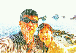 さてさて、一通りのお参りを済ませて、お腹も減りました。内宮の門前の、おはらい町通りをブラブラします。松坂牛のお店を覗くと、こりゃビックリするような高値!ちょっと手が出ませんなぁ。ベタではありますが赤福本店で赤福を購入。続いて、だんご屋で、みたらし団子を頂きました。やはり焼きたては格別ですなぁ。更に、おかげ横町に入って、福助うどん店で伊勢うどんを頂きましたよ。汁が濃い色の割には優しい味のうどんでありました。私もかみさんも大満足! しばらくおはらい町通りをブラブラして、バスに乗ってJR伊勢市駅の駐車場まで戻りました。本日の宿は駅近くの伊勢シティホテル。取り敢えずチャックインしたら眠くなってしまいましたよ。今朝3時起きの4時出発と早かったですからね。二人で3時間ほど昼寝をした後、シャワーを浴びて、駅前の居酒屋で名物の牡蠣を肴に軽く一杯やりましたとさ。ま、かみさんはお酒は全然なので、梅酒のソーダ割りを一杯飲んだだけですけどね。 翌朝はゆるゆると9時にチェックアウト。鳥羽のフェリー乗り場までは、海沿いの旧道を行く事にします。途中、 フェリーは昨日往復券を買っていたお陰でスムーズに乗れました。天気も良く視界も良好なので、展望特別室を奮発。ちょっとだけリッチな気分で55分の船旅を楽しみます。展望特別室に置いてあったパンフレットに、渥美半島どんぶり街道の文字が。そろそろお昼が近いですし、お昼の算段でも立てましょうか。という訳で、満場一致で、お食事処ないき 豊川ICからは往路と異なり、敢えて新東名で帰ります。トンネルが多く直線的でスピードを出しやすい道です。結局、夜8時過ぎに無事程久保基地に戻って参りました。 急に思いついて出掛けた割には相当楽しめたお伊勢参りでありました。Kazちゃん、また出掛けようネ!!