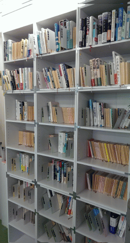 ここまで来ると、個人の本棚の域を越えて、ちょっとしたミニ図書館の風情であります。本を購入する事で安心し読まないで積んでおく、いわゆる蒐集タイプの方がいらっしゃると聞きますけれども、私はホレ、極度の吝嗇野郎でありますから、買った本は全て読んでおりますぜ。ひゃ〜、こうして眺めてみると、よくもこんなにたくさんの本を読んだものであります。私の場合、だいたい中学生の頃から読書癖が始まりましたので、30年以上に渡って読み続けている事になります。
