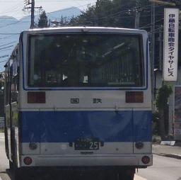 先週、かみさんと二人で伊那に出掛けたおり、伊那−高遠間を車で走っていて、路線バスに追いつきました。初めは全く気付かなかったのですが、よくよく見ると、バスの後部に「国鉄」の文字が!まさかこのバス、30年以上も現役で走り続けているの?!