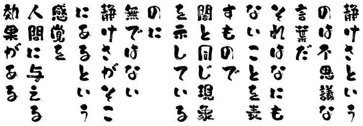 静けさというのは、不思議な言葉だ。それは、なにもないことを表すもので、闇と同じ現象を示しているのに、無ではない。静けさがそこにある、という感覚を人間に与える効果がある。